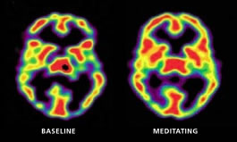 Hình bên trái: Bộ não lúc không ngồi thiền, ở trạng thái bình thường.