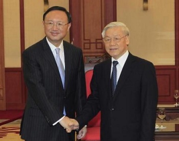 Ủy viên Quốc vụ viện Trung Quốc Dương Khiết Trì (L) và Tổng Bí thư Việt Nam Nguyễn Phú Trọng tại Hà Nội, ngày 27 tháng 10 năm 2014. Ảnh REUTERS / Kham