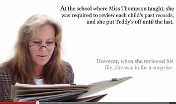 Cô Thompson từ từ xem qua các lời phê trong học bạ của học sinh, một việc nhà trường buộc phải làm đầu niên học. Và cô giật nảy mình khi đọc đến hồ sơ của Ted.
