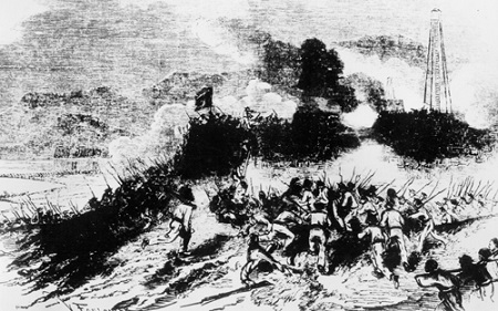Toàn cảnh chiến trường liên quân Pháp - Y Pha Nho chuẩn bị tấn công hệ thống phòng ngự của quân và dân Đà Nẵng dưới sự chỉ huy của danh tướng Nguyễn Tri Phương ngày 8/5/1859 (Ảnh http://www.tin247.com/, do Bảo tàng Đà Nẵng cung cấp)